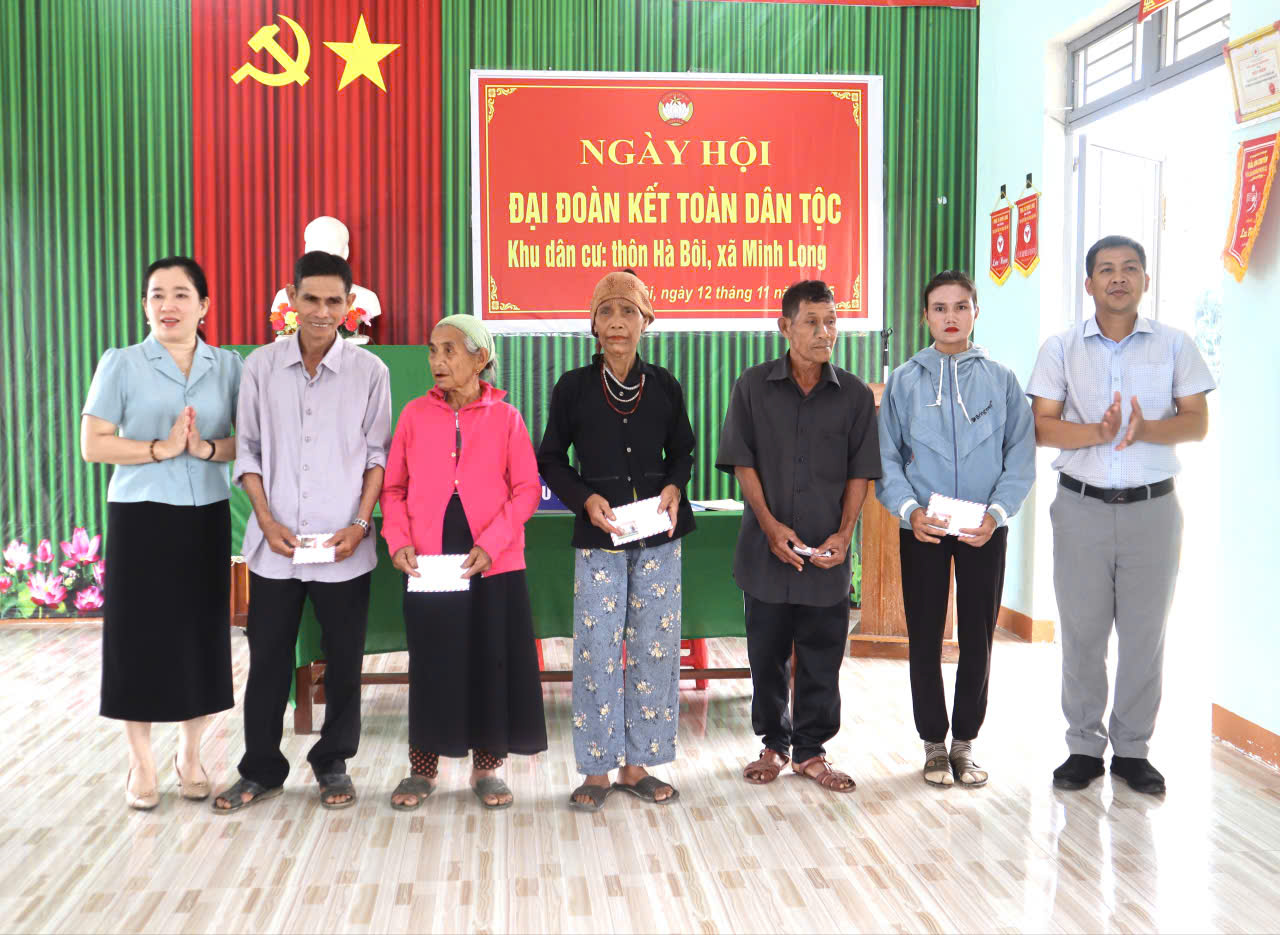 Sáng ngày 12/11/2025, khu dân cư Thôn Hà Bôi, xã Minh Long tổ chức ngày hội đại đoàn kết toàn dân tộc, nhân kỷ niệm 95 năm ngày thành lập Mặt trận thống nhất Việt Nam (18/11/1930- 18/11/2025). Đến dự đại hội có đ/c Đinh Trung Hiếu - Chánh văn phòng Đảng ủy, đồng chí Trần Thị Mỹ Lan - Phó chủ tịch UBND xã, đồng chí Hà Thị Ngun - Giám đốc Trung tâm công ứng dịch vụ công xã, cùng đông đủ bà con trong khu dân cư.