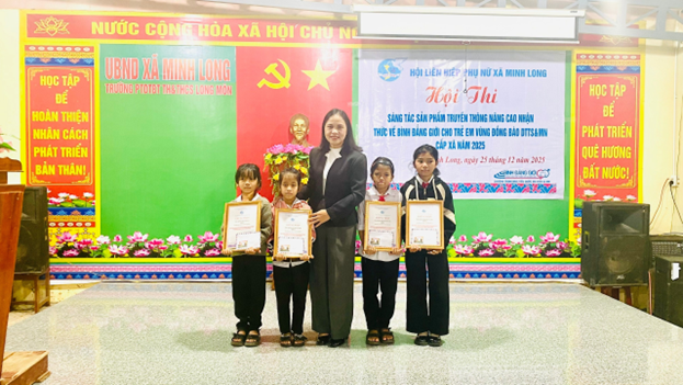 Trao giải cuộc thi “Sáng tác sản phẩm truyền thông nâng cao nhận thức về bình đẳng giới dành cho trẻ em vùng DTTS và miền núi xã Minh Long năm 2025” Với chủ đề “ Gia đình hạnh phúc”.