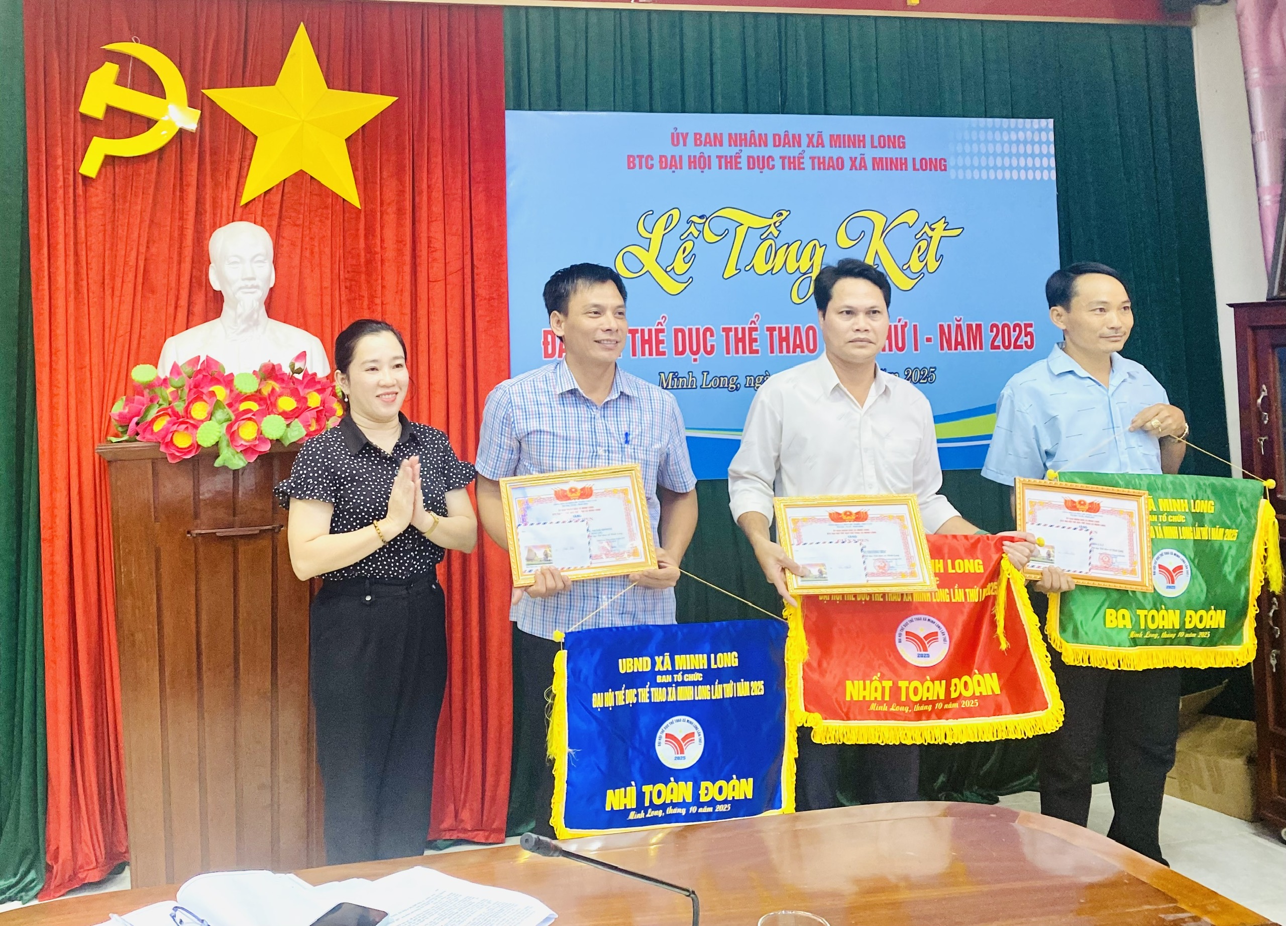 Kết quả, Khối giáo dục đạt giải Nhất toàn đoàn; Liên quân khối cơ quan đạt giải Nhì; và Liên quân: Thôn 1- Thôn 2- Thôn 3 đạt giải Ba. Đại hội sẽ lựa chọn những vận động viên xuất sắc để tham gia thi đấu cấp tỉnh năm 2026. Nhân dịp này, UBND xã đã trao giấy khen cho 2 tập thể và 3 cá nhân có thành tích xuất sắc trong công tác tổ chức và thi đấu tại Đại hội TDTT xã Minh Long lần thứ I năm 2025./.
