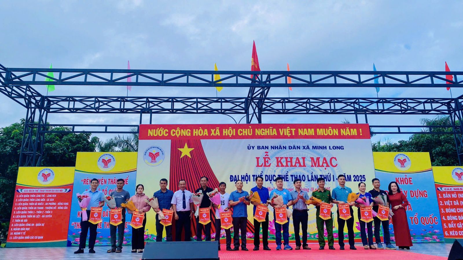 Sáng ngày 15/10, tại Công viên Cây xanh, UBND xã Minh Long đã long trọng tổ chức lễ khai mạc Đại hội thể dục thể thao xã Minh Long lần thứ I năm 2025. Dự Lễ khai mạc ở tỉnh có đồng chí Phạm Ngọc Hồng- Phó trưởng phòng quản lý thể thao – Sở văn hóa thể thao và Du lịch tỉnh. Ở xã có các đồng chí Lữ Văn Huy, Phó Bí thư Thường trực Đảng ủy xã, Đồng chí Đinh Thiết- Phó Chủ tịch HĐND xã; đồng chí Trần Thị Mỹ Lan – Phó chủ tịch UBND xã, Trưởng Ban tổ chức đại hội; Các đồng chí Thường trực HĐND, UBND, UBMT Tổ quốc Việt Nam xã; các đồng chí trưởng, phó các phòng, ban, ngành đoàn thể xã; các đồng chí Trưởng thôn, Hiệu trưởng các trường học đóng trên địa bàn xã cùng hơn 420 vận động viên thuộc 11 đoàn thể thao của các thôn và các khối liên quân: Giáo Dục; Y tế; Liên quân Công an - Quân Sự; và liên quân các cơ quan trên địa bàn xã.